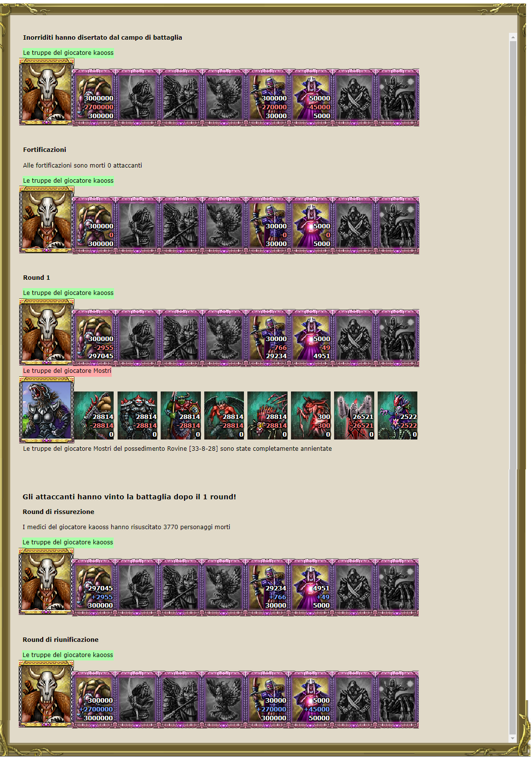 La capacità organizzativa e strategica del sovrano Kaooss si dimostrò vincente portando alla conquista di un grosso bottino di cristalli e perle nere furono avvisati tutti gli alleati e nel Regno si festeggiò brindando all’ambita vittoria.