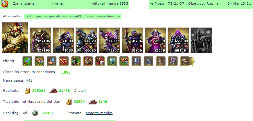 grazie a tutti chissa perchè ma me la aspettavo da 100k per truppa ..........a volte il limite tra un impresa leggendaria e una figura di .... è molto fine e mi piace vivere su quel confine in qui devi sempre dimostrare tutto perchè quando pensi di essere arrivato è la volta buona che l'ago pende verso la figura di m se si perdeva quella battaglia eravamo dei stupidi la fortuna aiuta gli audaci....buon game a tutti amici nemici e quelli che rosicano