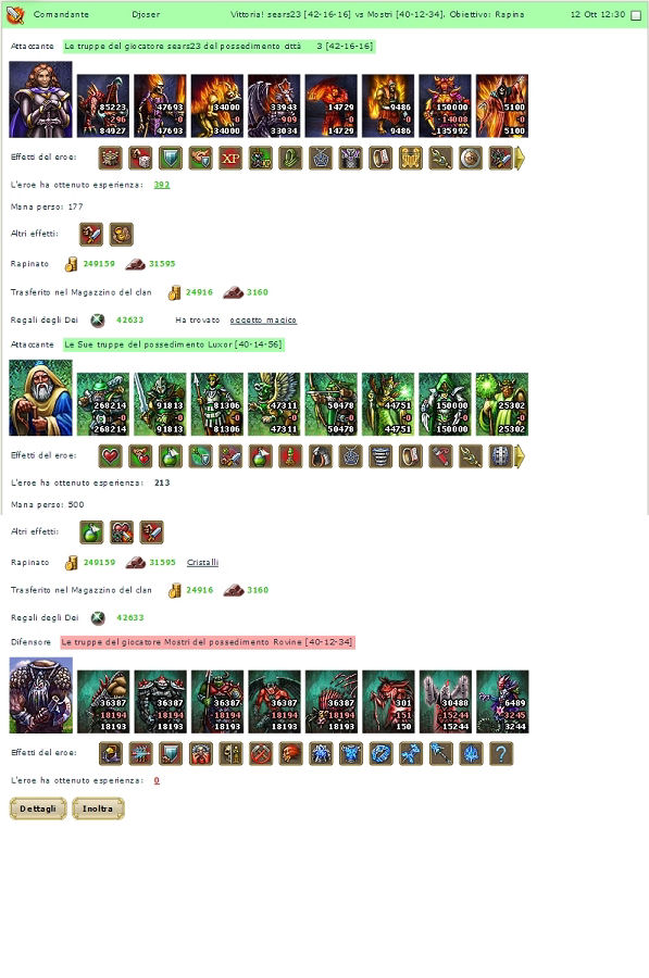 Sorpreso ed incredulo il nostro sovrano rimaneva sbigottito dinanzi tale notizia, la sorpresa era tanta, altre volte aveva sentito narrare di tali rovine ed in taverna aveva anche udito delle gesta di due sovrani amici che erano già riusciti in tale impresa ma mai si sarebbe aspettato di doverla a sua volta affrontare. Ripresosi dallo stupore invia un manipolo di spie a scrutare le forze nemiche ma nonostante la loro destrezza nel riuscire ad ottenere l’accesso al possedimento, causa l’abilità apportata dall’armatura indossata dall’eroe mostro "Ilfedado" che si trovava a difesa delle stesse, non riuscivano a rapportare sulla esatta quantità di truppe presenti all’interno della rovina, riferivano comunque della presenza di un un eroe mostro a capo di orde di raccoglitore gigantesco, golem di ferro, orco combattivo, gorgolla ignea, aculeosauro velenoso e spirito del fuoco, una legione di gran drago serpentino e poche streghe dell'inferno a custodia di ben 85266 perle nere.