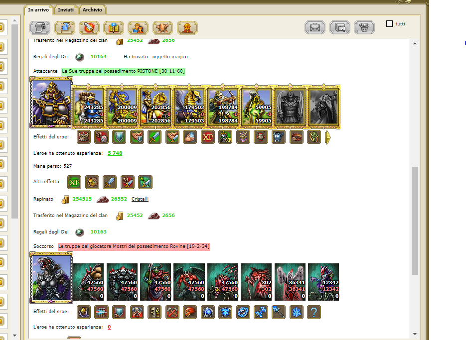 Ragno70 era in testa con tutto L'esercito formato da molti Militi e Cavalleria , ed io con truppe divise a metà su di un fianco grandiosi Alati e Militi e dall'altro fianco Arcieri e Cavalleria pesante .......... a poche centinaia di metri si poteva sentire il freddo che quelle bastarde creature emanavano, erano sudice e orribili, in cuor mio sapevo che l'unica maniera per poter vincere era la voglia DI SOPRAVVIVERE....gridai con forza All'attacco e ricordate che le vostre Famiglie vi attendono......Lo scontro fu duro e cruento sangue ovunque ma la vittoria Arrivo' una vittoria schiacciante le orde di mostri vennero schiantate e distrutte.